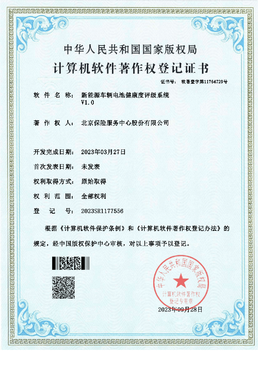 《新能源车辆电池健康度评级系统V1.0》