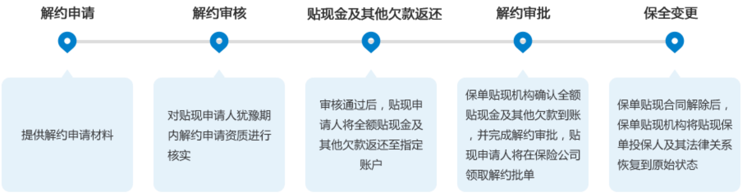 贴现申请人在签订贴现合同之日起30日或收到保单贴现资金15日内,如不同意合同内容,可申请撤消合同,需返还贴现金及贴现机构所代缴保费,并支付相应的资金利息。